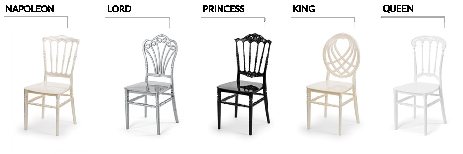 Co więcej – wszystkie nowe modele krzeseł ślubnych CHIAVARI można sztaplować aż do 11 sztuk co pozwoli znacząco ograniczyć przestrzeń potrzebną do przechowywania krzeseł kiedy nie są potrzebne. Wytrzymałość każdego modelu to 120 kg. Krzesła objęte są 3-letnią gwarancją producenta.