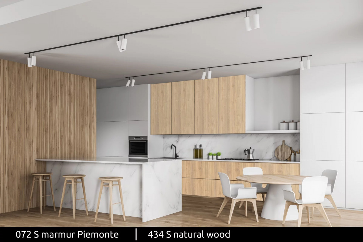 Pracujemy „projektowo” – pomagamy dobrać rozwiązania pod realne warunki użytkowania: kuchnia (wilgoć, temperatura, intensywne czyszczenie), strefy komunikacji i pomieszczenia komercyjne (odporność na ścieranie), a także zabudowy meblowe i ścienne (dobór dekorów i laminatów). Dzięki temu inwestor lub wykonawca może budować wnętrze w jednym standardzie wzorniczym.