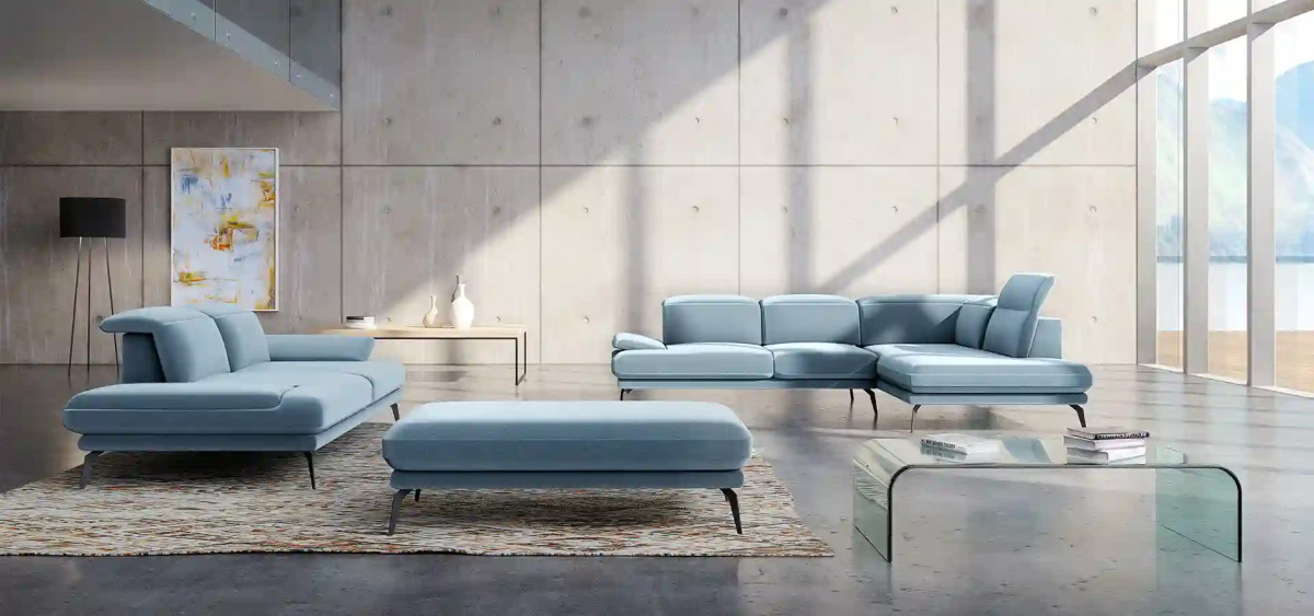 Ustal: wymiary ścian i ciągów komunikacyjnych, preferowany typ układu (sofa / narożnik / moduły), potrzebę regulacji (zagłówek / głębokość siedziska / przesuw oparć), oraz czy zestaw ma mieć pufę/hocker. Następnie dobierz kolekcję zgodną stylistycznie z wnętrzem i dopasuj tkaninę.