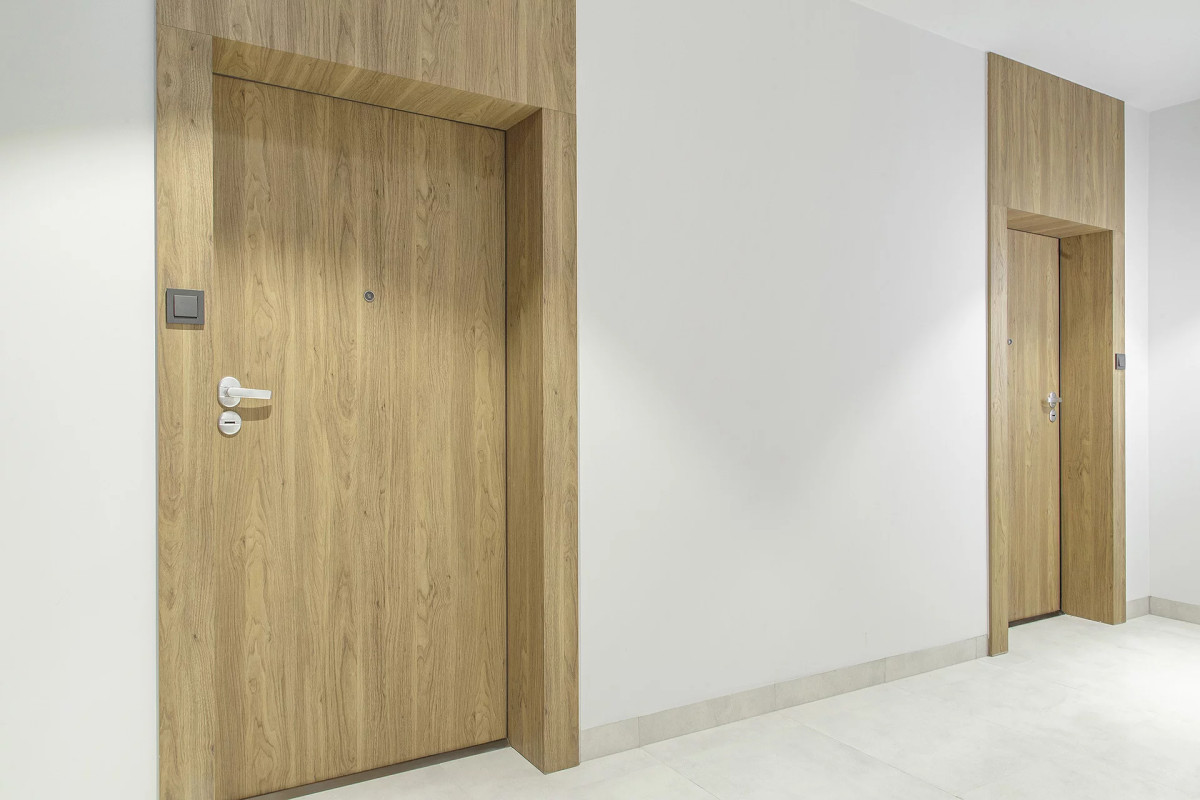 | Drzwi o zwiększonej odporności na włamanie | Drzwi wejściowe projektowane z naciskiem na bezpieczeństwo, trwałość oraz komfort codziennego użytkowania. Rozwiązania te znajdują zastosowanie m.in. w zabudowie mieszkaniowej i apartamentowej, gdzie liczy się połączenie ochrony, estetyki oraz możliwości dopasowania wykończenia do standardu wnętrza i części wspólnych. |