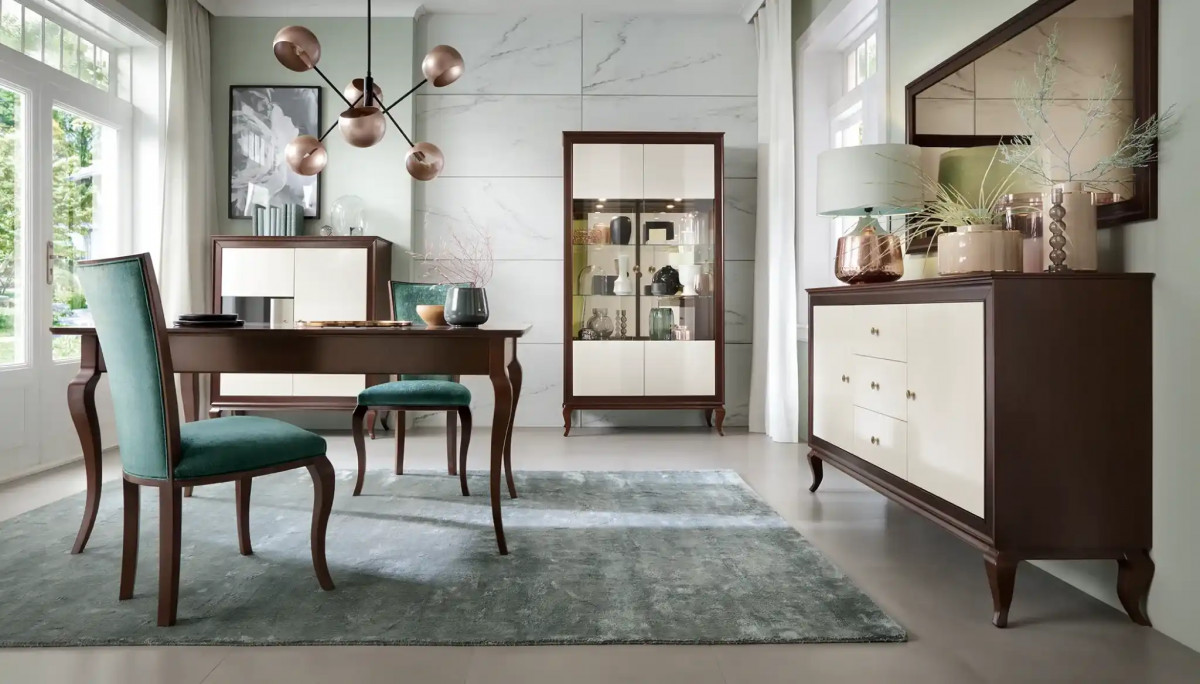 Produkujemy meble w kolekcjach klasycznych i nowoczesnych, projektowane tak, aby budowały spójną aranżację wnętrz i dawały się logicznie zestawiać w całych pomieszczeniach – od stref dziennych po sypialnie i gabinety. W praktyce oznacza to, że inwestor nie kupuje pojedynczych brył, tylko gotowy język wnętrza: powtarzalne wykończenia, dopasowane proporcje i elementy uzupełniające, które domykają projekt.