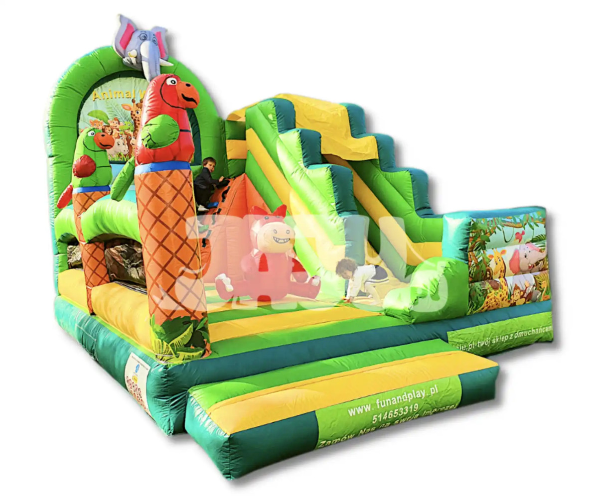| Dmuchane place zabaw | Wieloelementowe strefy zabawy dla młodszych dzieci, łączące różne aktywności w jednej atrakcji. Sprawdzają się tam, gdzie inwestor chce zapewnić dłuższy czas zabawy, większą różnorodność funkcji i bardziej rozbudowaną formę animacji dla rodzin z dziećmi. |