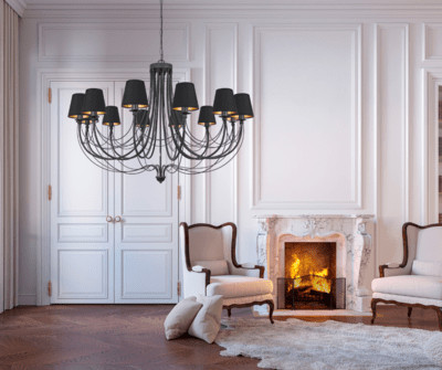 | Żyrandole i kinkiety świecznikowe | Modele świecznikowe (również z elementami dekoracyjnymi i „kryształkami”) – w wersjach złotych, srebrnych, białych, czarno-złotych, stosowane jako mocny akcent stylizacyjny w salonach, jadalniach i reprezentacyjnych strefach domu. |