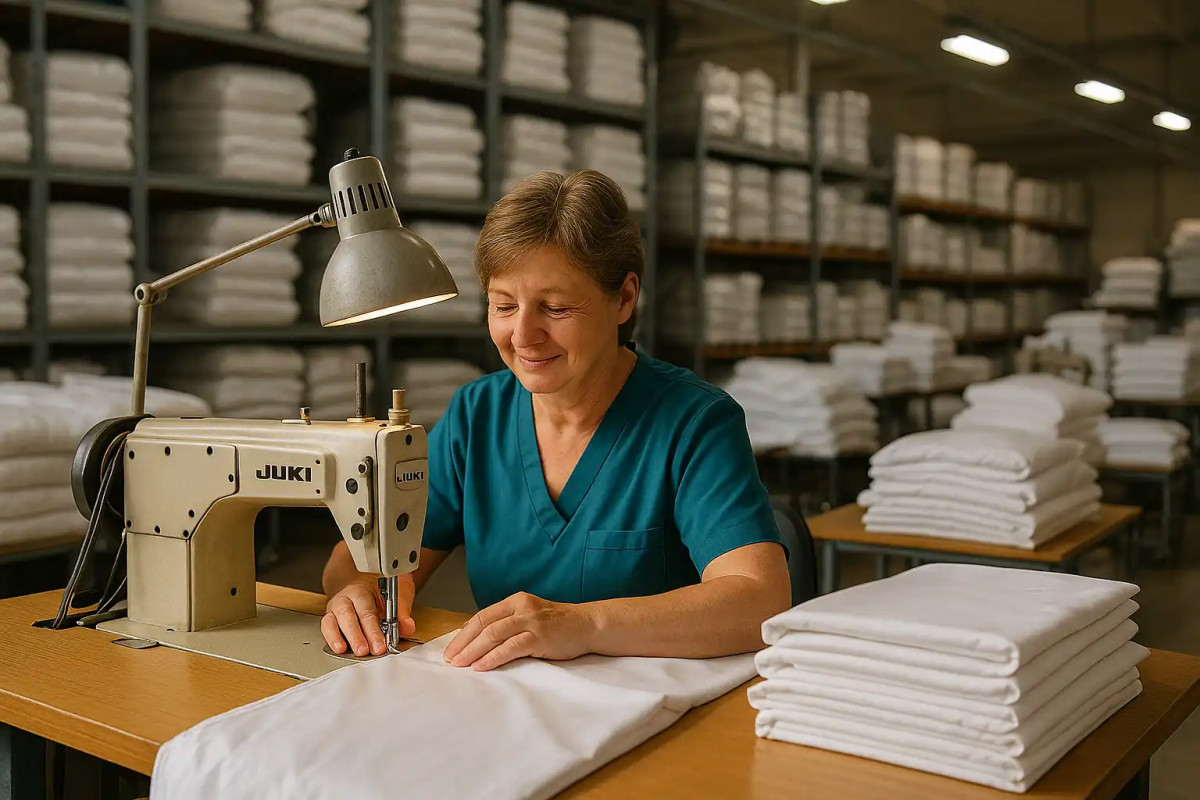 Dziś, po latach ciszy, ta sama szwalnia wraca do życia. Nie samotnie jednak — połączyła siły z lokalną hurtownią tekstyliów, która od lat zaopatruje pensjonaty i hotele w regionie. Razem stworzyły coś więcej niż biznes: nową markę pościeli hotelowej, która łączy nowoczesność z jakością z Podhala.