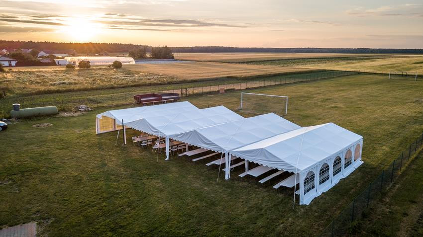 | Namioty 6x10 | Większe namioty przeznaczone do organizacji wydarzeń o większej skali. Mogą pełnić funkcję głównej przestrzeni dla gości lub zaplecza użytkowego tam, gdzie potrzebna jest bardziej rozbudowana strefa pod zadaszeniem. |