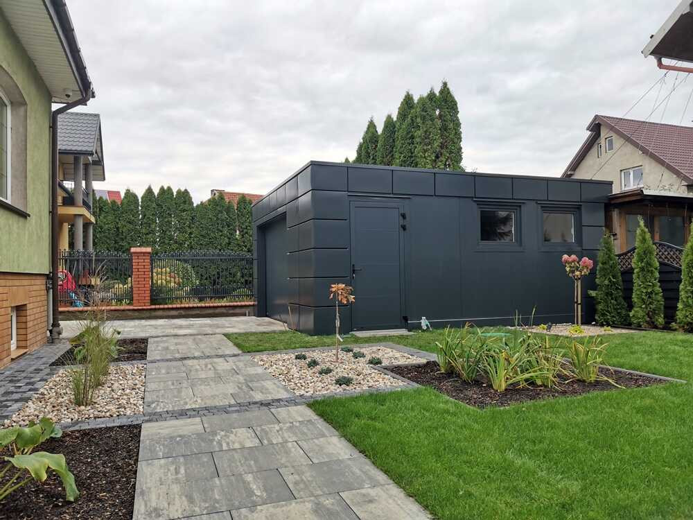 | Garaże | Realizacje garaży w technologii płyt warstwowych / płyty obornickiej – nacisk na bezpieczeństwo i trwałość. |