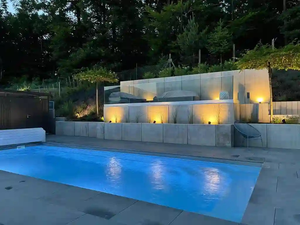 Realizacje obejmują strefy basenowe w różnych standardach – od klasycznych basenów ogrodowych po rozwiązania premium, gdzie równie ważne jak parametry techniczne są: estetyka, spójność z architekturą domu i ogrodu, oraz wygoda użytkowania (automatyka, ograniczenie obsługi ręcznej).