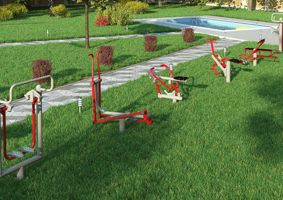 | Strefy rekreacji i relaksu | Uzupełnieniem oferty są elementy tworzące bardziej przyjazną przestrzeń wypoczynku – strefy relaksu, zestawy ogrodowe, miejsca do odpoczynku i rozwiązania zachęcające do spędzania czasu na świeżym powietrzu także poza samym treningiem. |