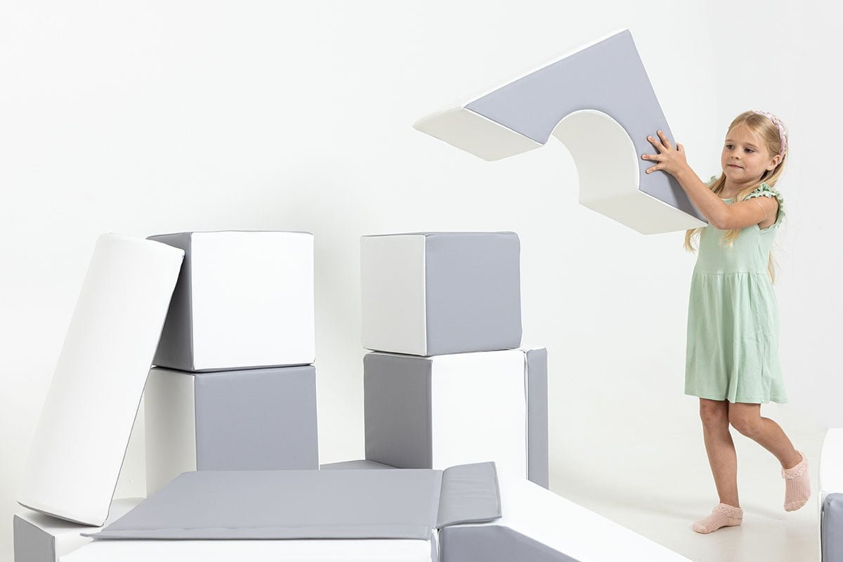 | Klocki i moduły piankowe | Elementy do budowania układów wspierających rozwój psychomotoryczny dzieci. Mogą służyć do tworzenia torów przeszkód, miękkich schodków, siedzisk, mini-przeszkód i prostych konstrukcji do ćwiczeń lub zabawy grupowej. |