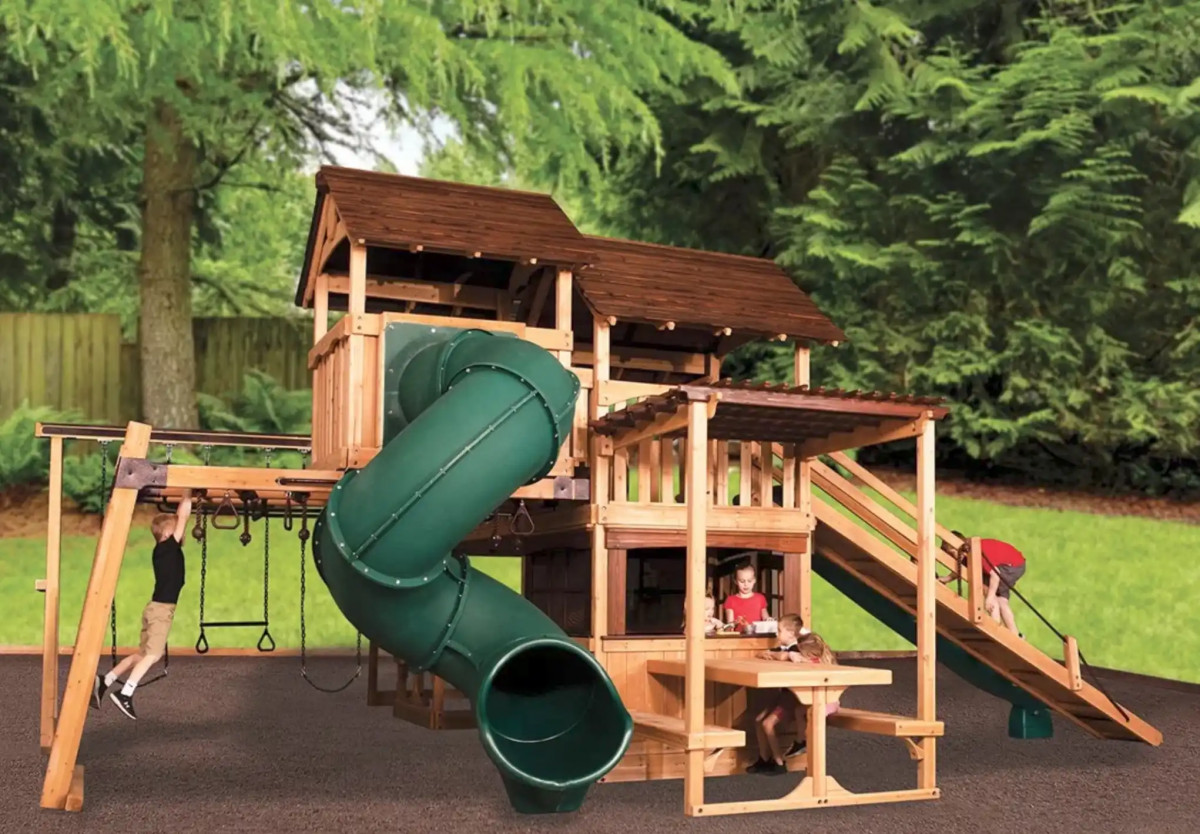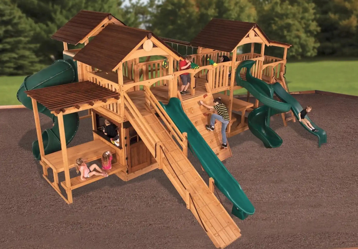 | Drewniane place zabaw (zestawy) | Zestawy w różnych rozmiarach i konfiguracjach – od kompaktowych rozwiązań do ogrodu po większe konstrukcje z kilkoma strefami aktywności. |
