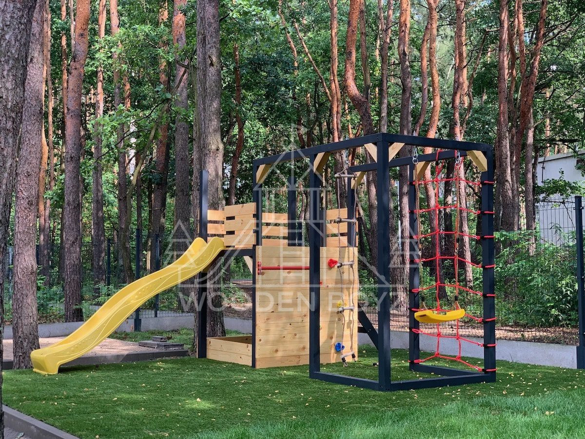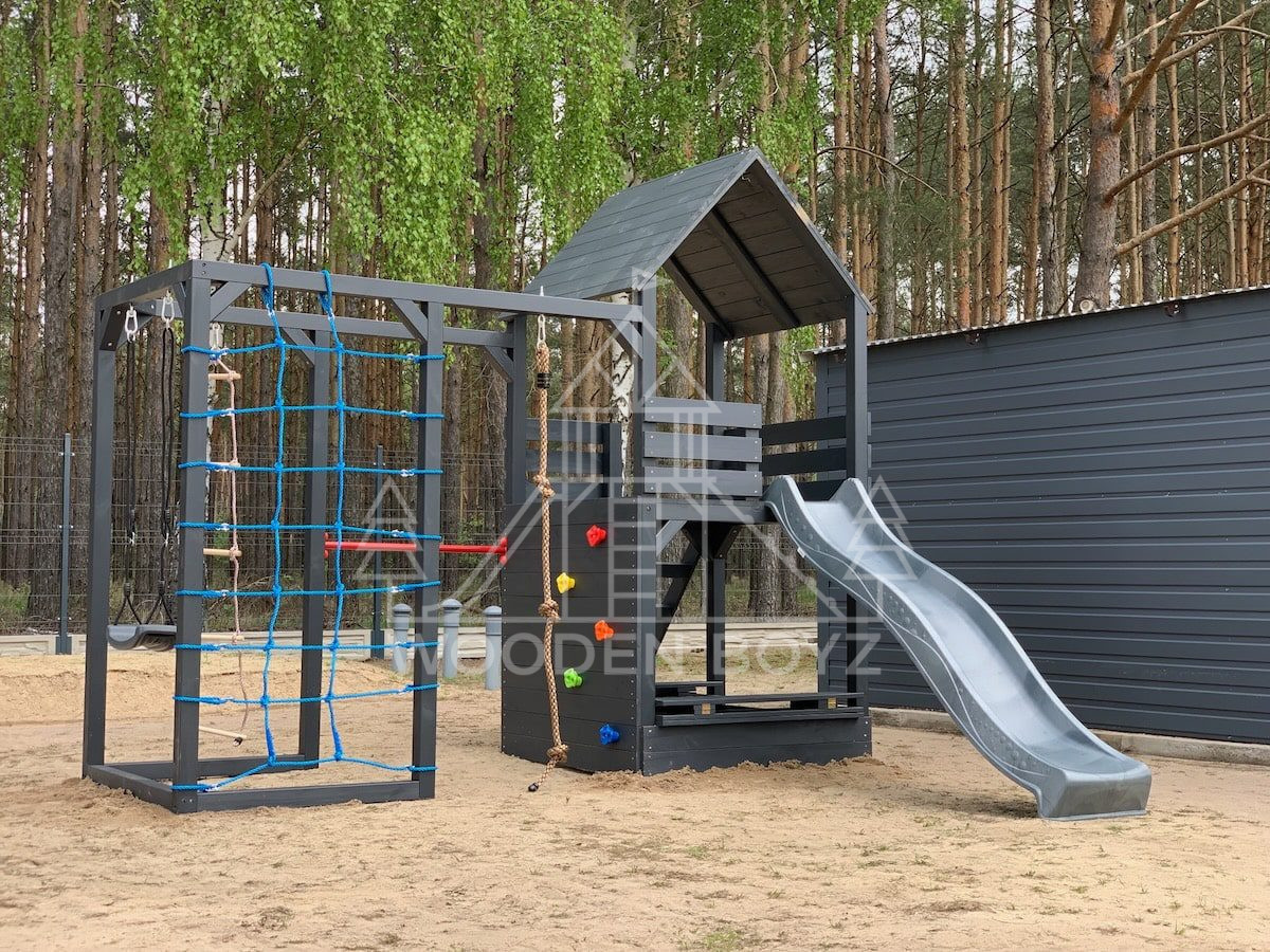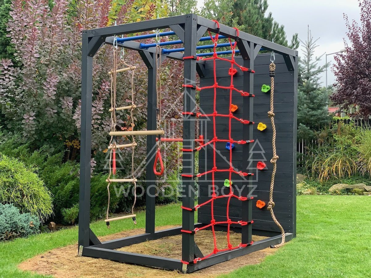 Oferta Wooden Boyz obejmuje kilka modeli placów zabaw o różnym stopniu rozbudowy – od bardziej kompaktowych zestawów do mniejszych ogrodów po większe konstrukcje z dodatkowymi elementami wspinaczkowymi i gimnastycznymi. Wspólnym mianownikiem jest projektowanie placu jako kompletnej, gotowej do użytkowania strefy zabawy, która ma angażować dzieci ruchowo, rozwijać koordynację, zachęcać do wspólnej aktywności i wpisywać się wizualnie w przestrzeń ogrodu.