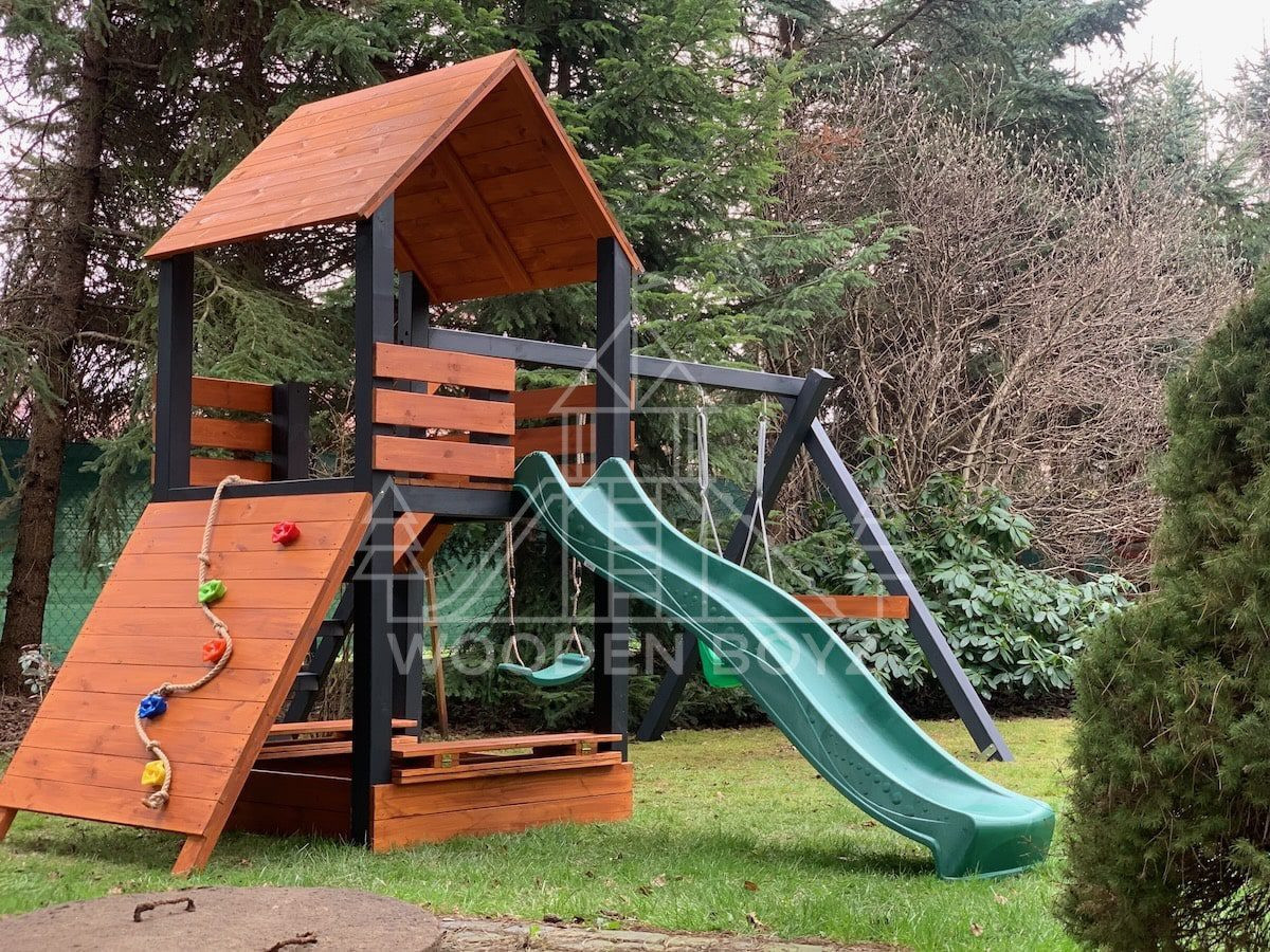 | Impregnacja | Ma chronić drewno przed warunkami atmosferycznymi i wydłużać żywotność placu zabaw w środowisku ogrodowym. |
