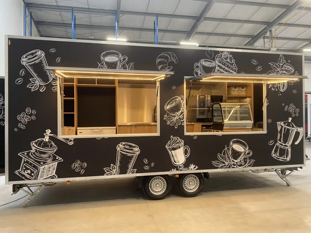 | Projekt i konfiguracja zabudowy | Opracowujemy układ przyczepy tak, aby był ergonomiczny, logiczny i wygodny w codziennej pracy. Dotyczy to zarówno rozmieszczenia okien sprzedażowych, jak i zabudowy meblowej, instalacji oraz przestrzeni roboczej dla personelu. |