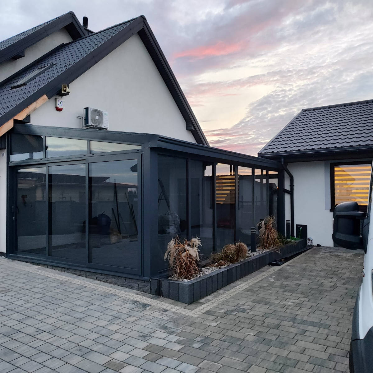 Nasze realizacje powstają jako zabudowy przyścienne lub konstrukcje wolnostojące, z naciskiem na szczelność, estetykę i trwałość w warunkach eksploatacji całorocznej (wiatr, opady, nasłonecznienie, obciążenie śniegiem – w zależności od założeń projektu).