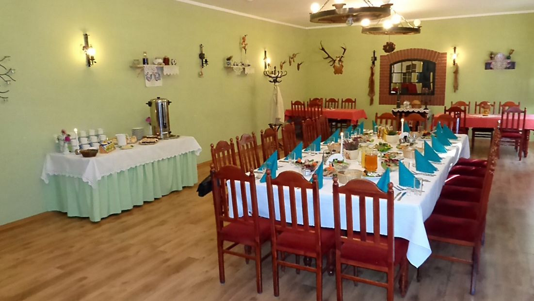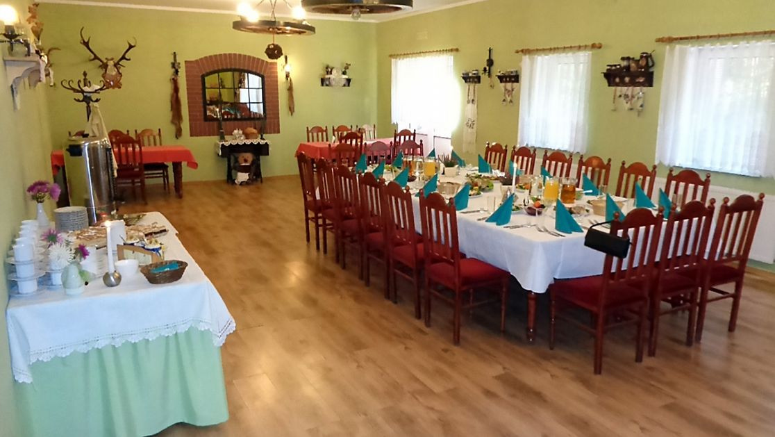 Nasza przestronna restauracja z drink barem może spokojnie pomieścić 12O osób. W rodzinnej atmosferze będą Państwo mogli skosztować wykwintnych dań kuchni polskiej. Nasza fachowa obsługa dokona wszelkich starań, aby czuli się Państwo u nas jak w domu na obiedzie u mamy.