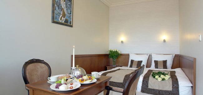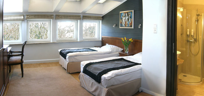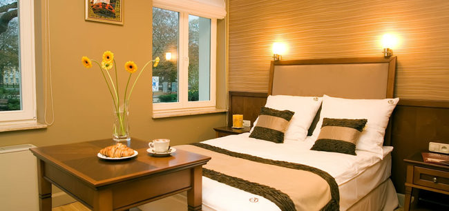 Pokoje typu Standard, z widokiem na skwer spacerowy oraz fontannę, znajdują się na parterze, pierwszym oraz drugim piętrze. Wyposażone są w łóżka pojedyncze lub podwójne, część pokoju posiada również sofy dwuosobowe lub dostawki. Jeżeli poszukujesz taniego noclegu nad Bałtykiem, to pokój typu Standard jest właśnie dla Ciebie. Metraż pokoi wynosi od 13 do 30 m².