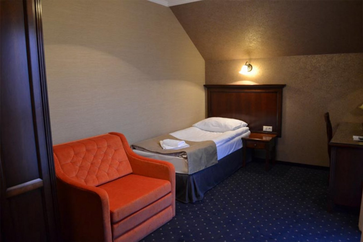 Nasza baza noclegowa to 33 komfortowowo wyposażone pokoje hotelowe: 3 Apartamenty, 2 pokoje 2-osobowe De Luxe, 2 pokoje Comfort, 22 pokoje 2-osobowe oraz 4 pokoje 1-osobowe. Przytulna aranżacja wnętrza pozwala wypocząć i poczuć się jak w domu. W całym hotelu dostępna jest bezprzewodowa sieć Wi-Fi, umożliwiająca nieograniczony dostęp do internetu. Wszyscy Goście mogą korzystać z bezpłatnego monitorowanego parkingu, zlokalizowanego przed hotelem.