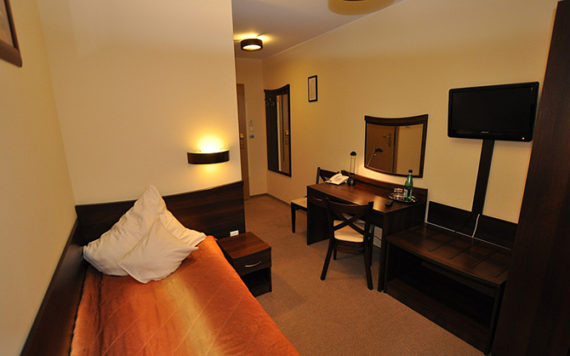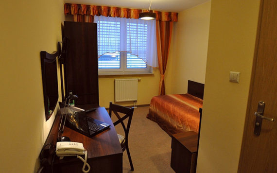 Standardowe wyposażenie pokoi: łazienka z prysznicem, umywalką i toaletą, telewizor LCD, biurko z krzesłem, bezpłatny dostęp do internetu WiFi.