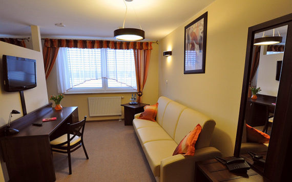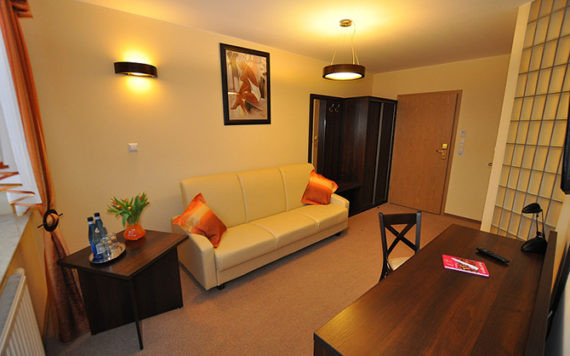 . 'Wszystkie sale są klimatyzowane. We wszystkich salach i pokojach hotelowych istnieje możliwość odbioru internetu bezprzewodowego. Posiadamy sprzęt audiowizualny dla organizatorów szkoleń i konferencji. Przygotowani jesteśmy do obsługi zorganizowanych grup turystycznych i obsługi wycieczek autobusowych. Dla stałych klientów, grup zorganizowanych i biur podróży udzielamy korzystnych rabatów na usługi hotelowe i gastronomiczne.