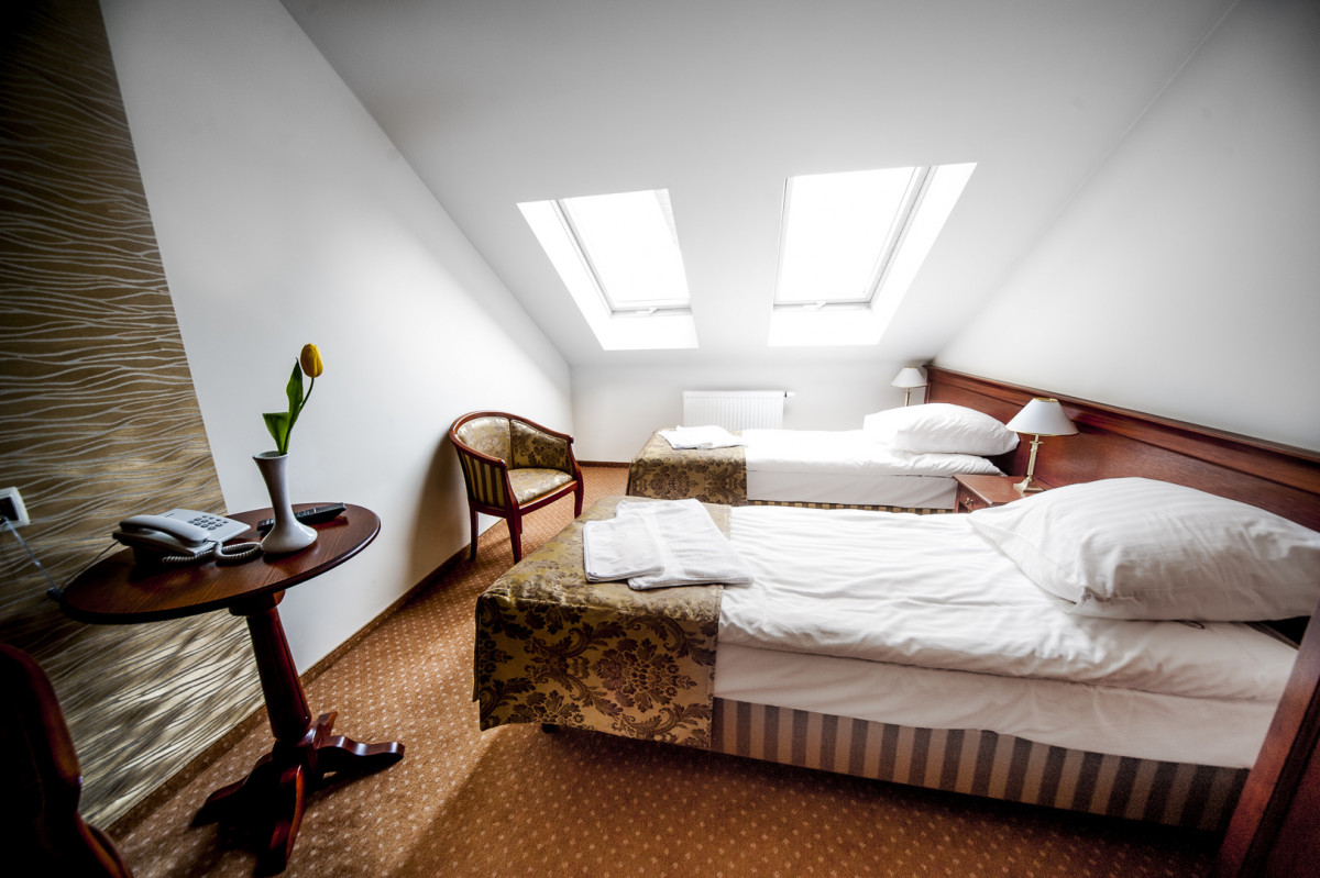 Gościom, którzy chcą z nami zostać na dłużej proponujemy nocleg w naszych pokojach gościnnych. Posiadamy pokoje 3-osobowe, 2-osobowe, 1-osobowe oraz 3 apartamenty. Przywiązujemy dużą wagę do tego, by nasi Goście mieli zagwarantowaną prywatność i spokój. Każdy z pokoi jest wyposażony w telewizor, Internet, telefon i suszarkę do włosów. Na życzenie Gościa na czas pobytu w hotelu wypożyczamy odbiornik Stowarzyszenia Niezależnej Fonografii Polskiej. Posiadamy jeden pokój dostosowany do potrzeb osoby niepełnosprawnej. W cenę pokoju wliczone jest śniadanie w formie bufetu szwedzkiego i bezprzewodowy internet. Doba hotelowa zaczyna się o godzinie 14.00 do godziny 11.00 dnia następnego.