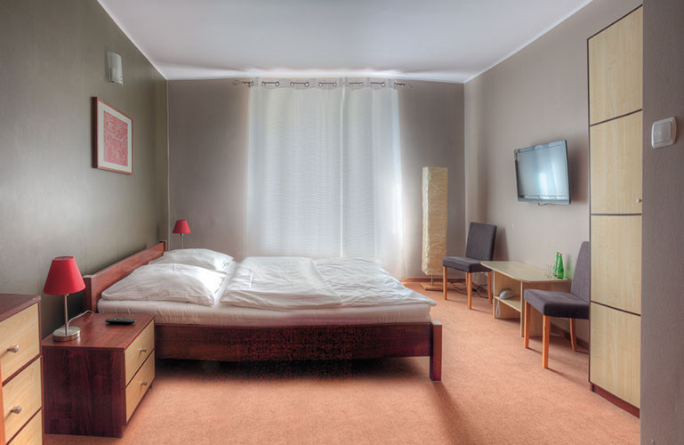 Solidne, nowoczesne i bardzo przestronne pokoje jedno lub dwuosobowe. Na wyposażeniu każdego z nich telewizja satelitarna, radio, szybkie WiF i oddzielna łazienka. Do wyboru także wygodne łoża małżeńsk ie i łóżka jednoosobowe.Uniwersalne i nowoczesne wyposażenie pokoi sprawi, że poczujesz się jak w domu. Dołożyliśmy wszelkich starań aby zarówno wystrój jak i ich sam wygląd cieszył oczy każdego z gości w nich przebywających.