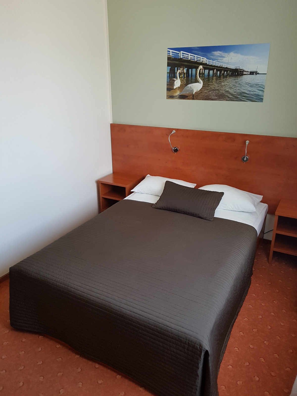 Pokoje klasy de Luxe posiadają większy metraż, podwójne, komfortowe łóżko, lodówkę, kawę, herbatę oraz bezprzewodowy czajnik na wyposażeniu.