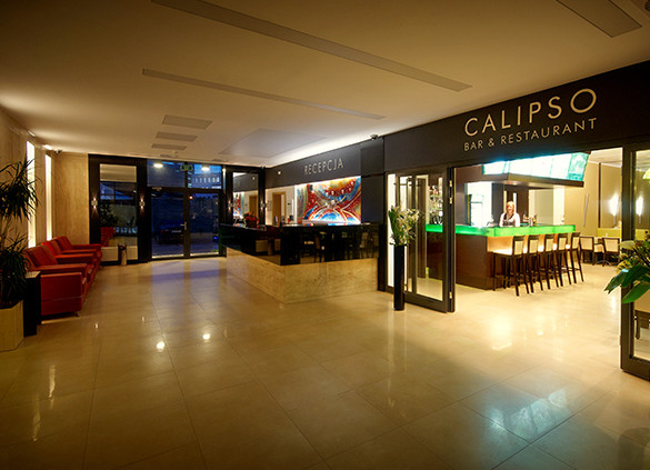 . 'Hotel oferuje nowocześnie i komfortowo wyposażone pokoje i apartamenty, centrum konferencyjne trzema salami, elegancką Restaurację Bucatti i Calipso Bar& Restaurant serwującą dania kuchni włoskiej i międzynarodowej. Dobrą zabawę gwarantujemy w kameralnym Bowling Club z trzema torami do gry i drink barem. Dla gości dostępny jest bezpłatny Internet bezprzewodowy oraz sieć LAN (50 Mbps) i parking dozorowany. Na chwile relaksu zapraszamy do części Rekreacyjnej Mokuso, z sauną suchą i łaźnią mokrą oraz dużym jacuzzi.