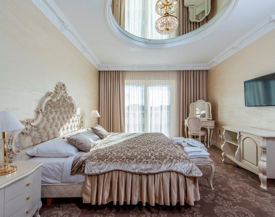 Apartament Pałacowy Komfortowy, pięknie zaaranżowany przestrzenny i jasny apartament z pięknym widokiem. Apartament Lustrzany podzielony jest na część dzienna oraz sypialnię.