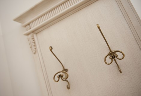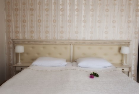 Apartament na tle innych naszych pokoi wyróżnia się wnętrzem. Pokój wyposażony jest w piękne stylowe meble w kolorze bieli antycznej, duże podwójne łózko oraz minibar.