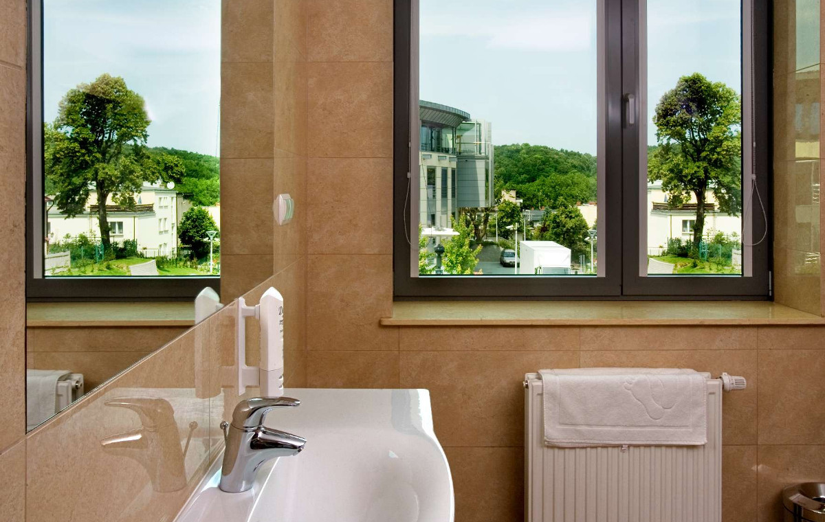 . 'Poszukujesz miejsca na noclegi w Gdyni? Pokoje i apartamenty w naszym hotelu gwarantują udany wypoczynek. Hotel Kuracyjny w Gdyni Orłowie oddaje do dyspozycji gości 27 eleganckich oraz komfortowo wyposażonych pokoi i apartamentów, w których jednocześnie można przyjąć 49 osób. Struktura pokoi hotelowych obejmuje 6 pokoi jednosobowych, 16 pokoi dwuosobowych (oferowanych również jako jednoosobowe), 4 pokoje dwuosobowe typu LUX z możliwością wykorzystania jako trzyosobowe oraz 1 apartament business PANORAMA, który jest perełką hotelu.