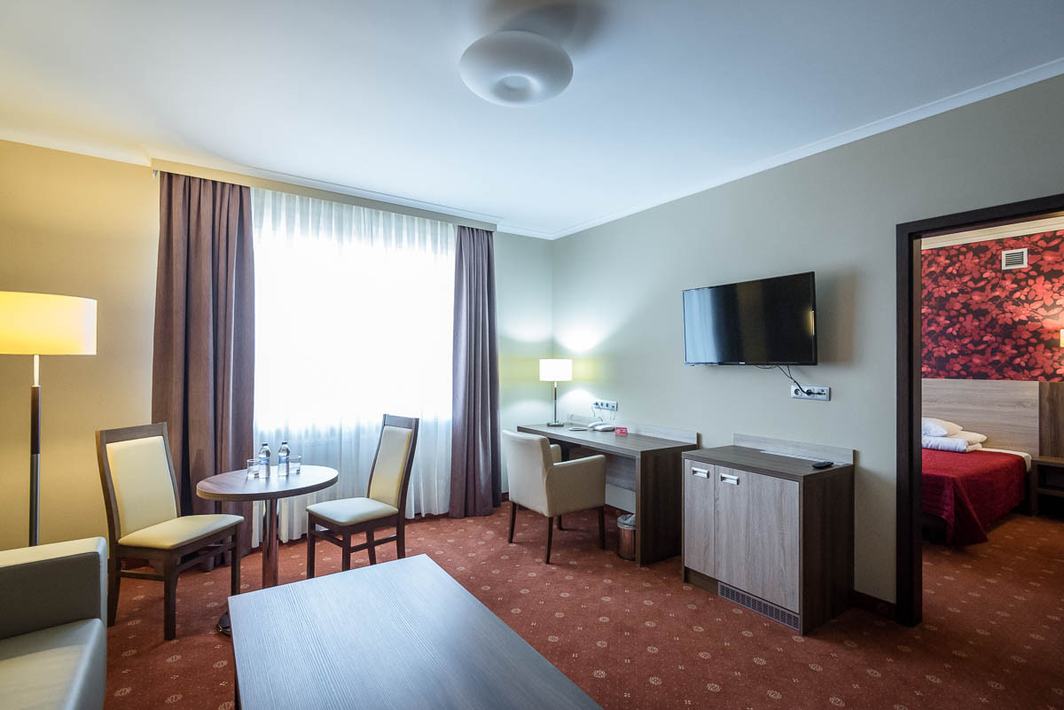 Aktualnie hotel dysponuje 30 pokojami jedno i dwuosobowymi oraz 2 apartamentami. Istnieje możliwość tzw. „dostawki” do pokoju dwuosobowego, np. dla rodziców z dzieckiem. Pokoje są urządzone w sposób prosty nowoczesny i funkcjonalny. Każdy wyposażony jest w łazienkę z kabiną prysznicową, telewizor LCD, telefon, mini bar, suszarka. Apartamenty wyposażone są w wanny z hydromasażem. W każdym pokoju dostępny jest dostęp do internetu LAN i WiFi.