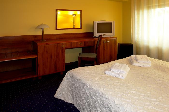 Wygodny i przestronny (ok. 15 m kw plus łazienka) pokój ze wszystkim co potrzebne do wypoczynku i do pracy. W większości z dwoma osobnymi łóżkami, ale także z łożem małżeńskim oraz z możliwością skorzystania z dostawki.