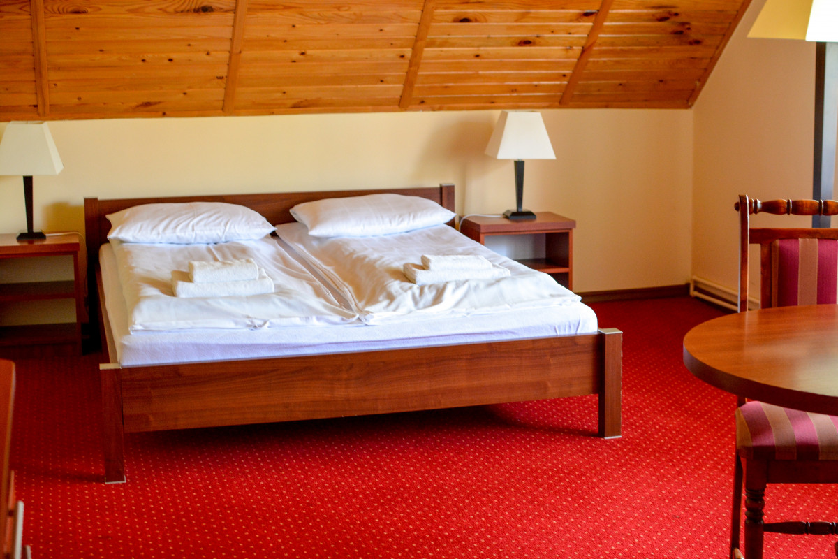 Naszym Gościom oferujemy 99 miejsc noclegowych w przestronnych pokojach jedno-, dwu- i trzyosobowych, pokojach familijnych typu studio oraz komfortowo wyposażonym apartamencie z kominkiem.