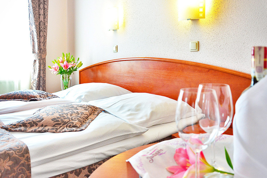 Zdajemy sobie sprawę, że nikt nie lubi kupować kota w worku, a decydując się na hotel chcieliby Państwo wiedzieć w jakich warunkach spędzicie noc. Nasz trzygwiazdkowy hotelu został zaaranżowany przez znanego projektant wnętrz Arkadiusza Więckowskiego. Podczas aranżacji zadbano nie tylko o wygodne meble i najwyższej jakości tkaniny, ale także o takie zorganizowanie przestrzeni, które sprawi, że będzie ona idealna zarówno do pracy, jak i odpoczynku. Tworząc nasze wnętrza chcieliśmy, aby były one przestronne, eleganckie, ciepłe i zapewniające niepowtarzalną atmosferę. Zarówno pokoje, łazienki, jak i przestrzenie wspólne naszego hotelu zaaranżowano z wykorzystaniem ciepłych barw. Znajdą u nas Państwo wiele żółci, brązów, czerwieni, ale także bieli, czerni czy złota. Wnętrza zostały urządzone w nawiązaniu do przeszłości kamienicy, w której znajduje się hotel, ale jednocześnie jest to nowoczesny styl glamour. Przedstawione w tej zakładce zdjęcia prezentują wnętrza naszego hotelu – liczymy, że przypadną one Państwu do gustu.