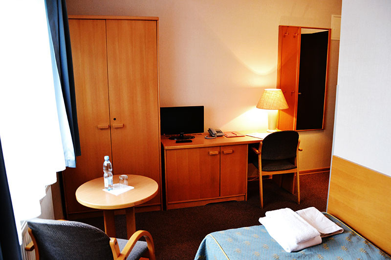 Pokój o standardowym wyposażeniu. Umożliwia wypoczynek w komfortowych warunkach. W pokoju znajduje się telewizor oraz telefon. Zapewniony jest również dostęp do hotelowej sieci Wi-Fi. Pokoje „Standard” usytuowane są na wyższych kondygnacjach.