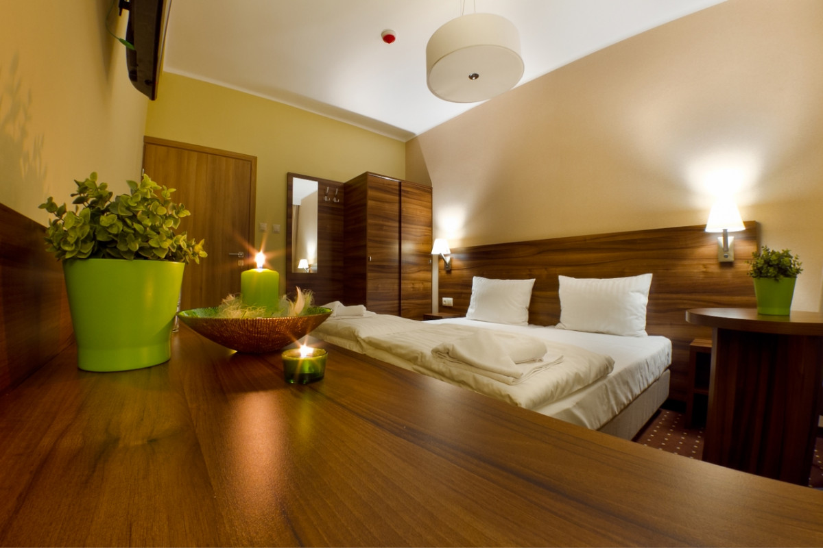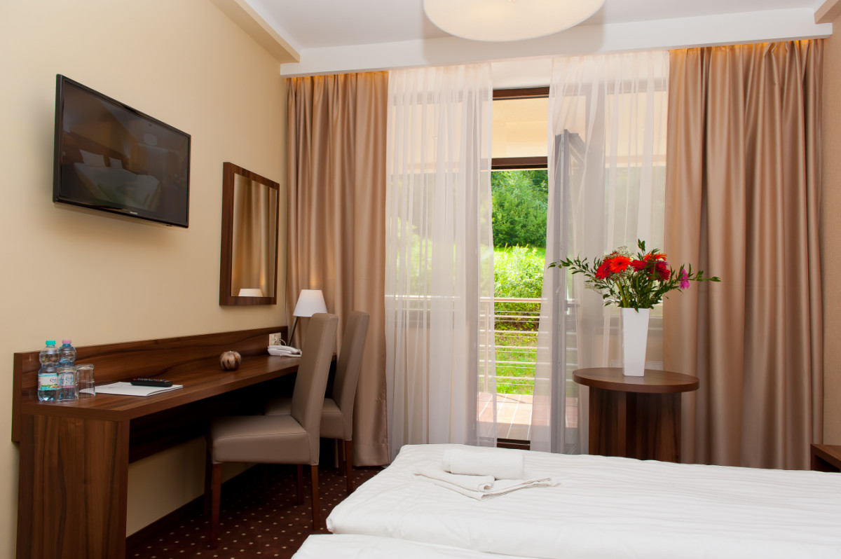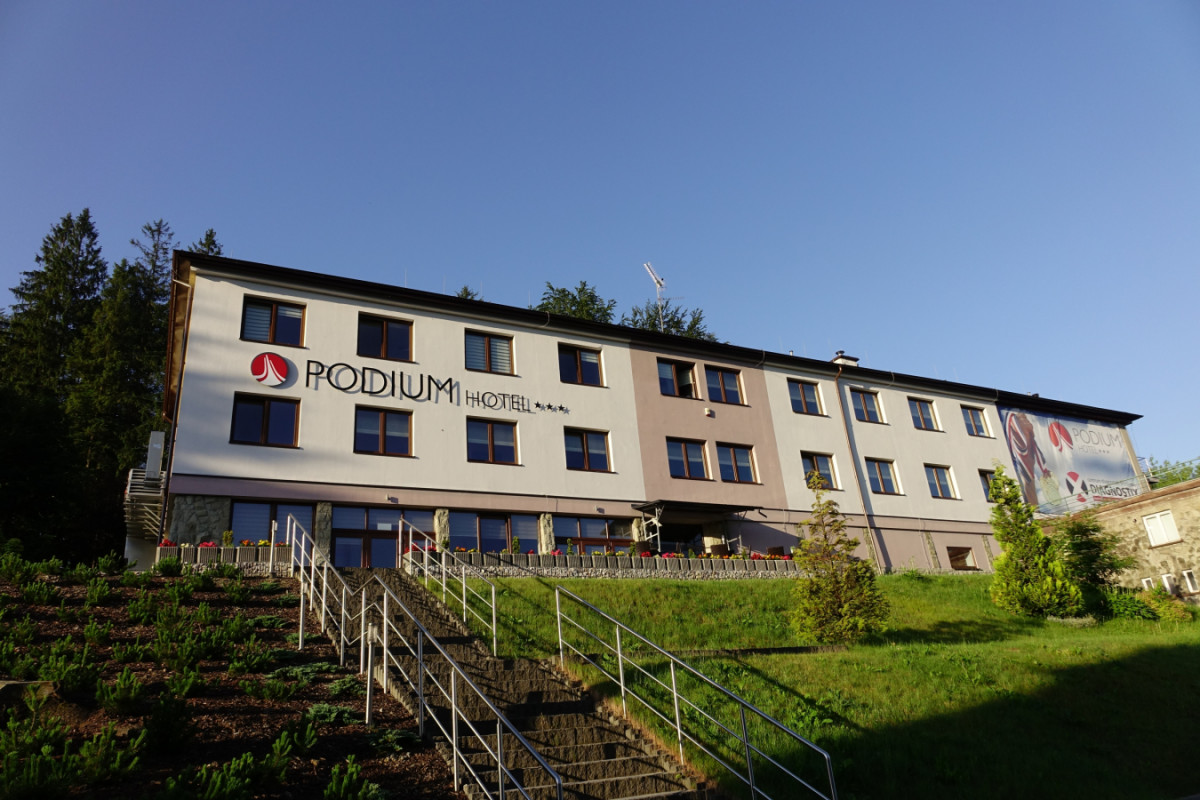 Wszystkie pokoje Hotelu *** PODIUM wyposażone są w obszerne tarasy, łazienkę z toaletą i prysznicem, telefon oraz telewizor z szerokim wyborem kanałów, miejsce do pracy. Na terenie całego obiektu dostępny jest bezpłatny, bezprzewodowy dostęp do internetu (WIFI).