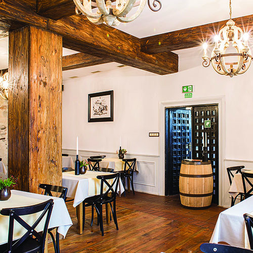 Restauracja, to stylizowane i historyczne wnętrze, gdzie każdy szczegół ma znaczenie. Karta menu bazuje na rybach z okolicznych wód oraz zwierzynie leśnej. Nazwa Restauracji zobowiązuje by nie zabrakło w niej win oraz miodów pitnych a ponadto posiada szeroki wybór piw belgijskich produkowanych w zakonie cystersów.