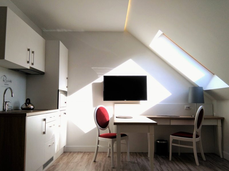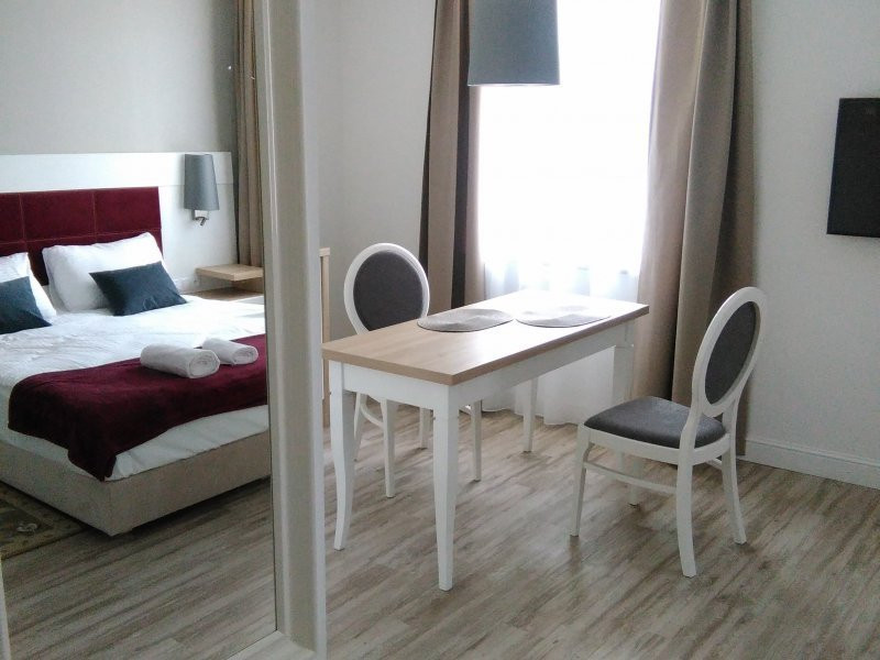 Jest to komfortowy klimatyzowany pokój z możliwością regulacji temp o powierzchni do 32 m² z jednym łóżkiem małżenskim oraz możliwością dostawki dla jednej osoby. Pokój z w wbudowanym aneksem kuchennym w pełni wyposażonym składający się z mikrofalówki, lodówki, płyty indukcujnej, zmywarki. Ponadto w pokoju znajduje się biurko, płaski telewizor z kanałami telewizji kablowej oraz dostęp internetu bezprzewodowego. Dopełnieniem całości jest wygodna łazienka z prysznicem, suszarką do włosów oraz zestawem kosmetyków.
