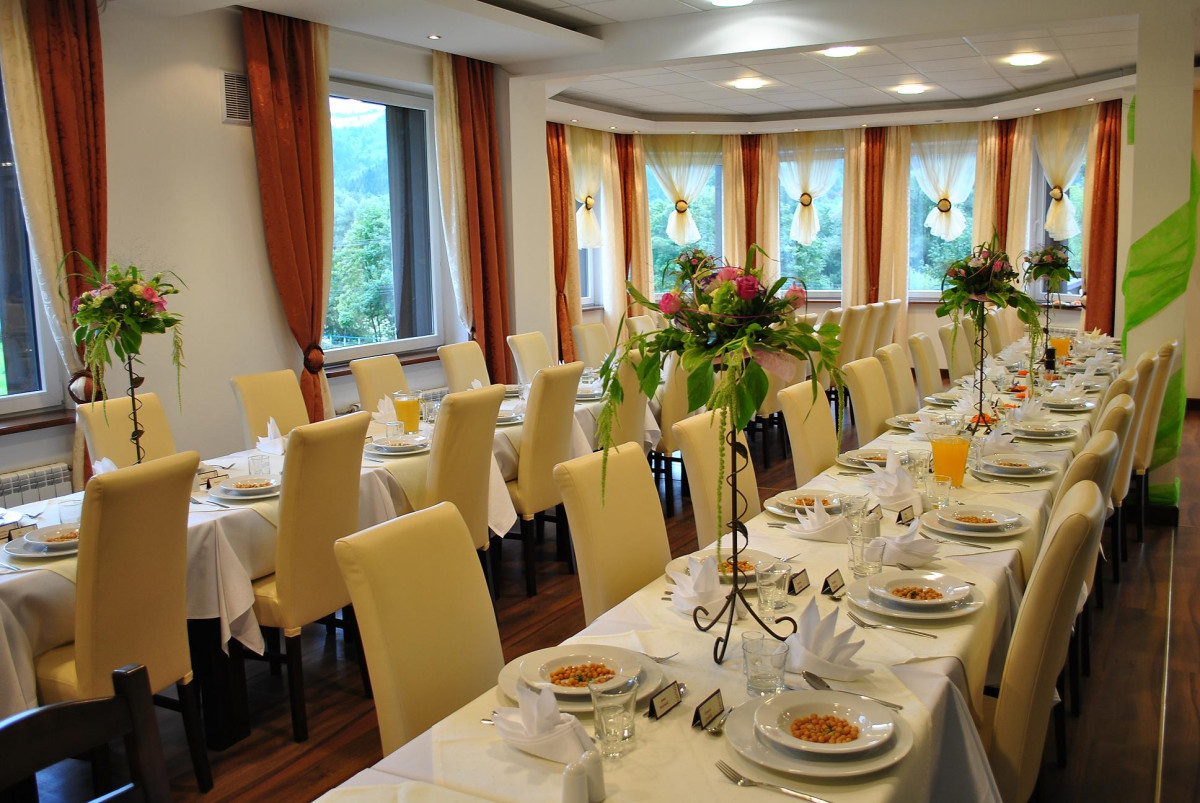 Wesela - Ślub to jedno z najważniejszych wydarzeń w życiu każdego człowieka, dlatego tak ważne jest by przebiegał w niczym niezakłuconej atmosferze. Nasza obsługa hotelowa zadba o to by ten wyjątkowy dzień był magiczny. Zatroszczymy się o każdy element przyjęcia weselnego taki jak elegancki wystrój sali, wyśmienite jedzenie, świetną oprawę muzyczną z możliwością zabawy z wodzirejem, a także moc atrakcji dla nowożeńców i wszystkich gości!. Sprawimy by goście jak i Młoda Para bawili się dobrze do białego rana. Z nami mają Państwo pewność, że cała uroczystość przebiegnie spokojnie i w miłej atmosferze!