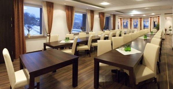 Dysponujemy salą restauracyjną. Sala jest duża, jasna, elegancka, z panoramicznym widokiem na góry i Dunajec. Oferujemy menu kuchni polskiej i europejskiej oraz kontynentalne śniadania. Serwujemy dobrą kawę i bogaty wybór herbat. W czasie wolnym można skorzystać z wielu atrakcji np: quady, spływ Dunajcem, wędrówki piesze, paintball, wspinaczka i inne. Restauracja Hotelu Smile*** serwuje pyszne dania kuchni polskiej. W menu znaleźć można także wyśmienite dania z grilla oraz będące naszą specjalnością naleśniki słodkie i wytrawne.W subtelnym klimacie i przy nastrojowej muzyce warto się skusić na aromatyczną kawę, serwowaną wraz z pysznymi domowymi wypiekami. Rodzice z dziećmi na pewno docenią przeznaczone dla nich udogodnienia: krzesełka do karmienia czy kącik zabaw dla maluchów. Wieczorem, po pełnym wrażeń dniu zapraszamy do naszego baru, w którym mogą Państwo skosztować znajdujących się w ofercie drinków, alkoholi, przekąsek oraz zamówić dania z karty. Na dużym telewizorze można obejrzeć wiadomości ze świata lub emocjonujące wydarzenia sportowe.