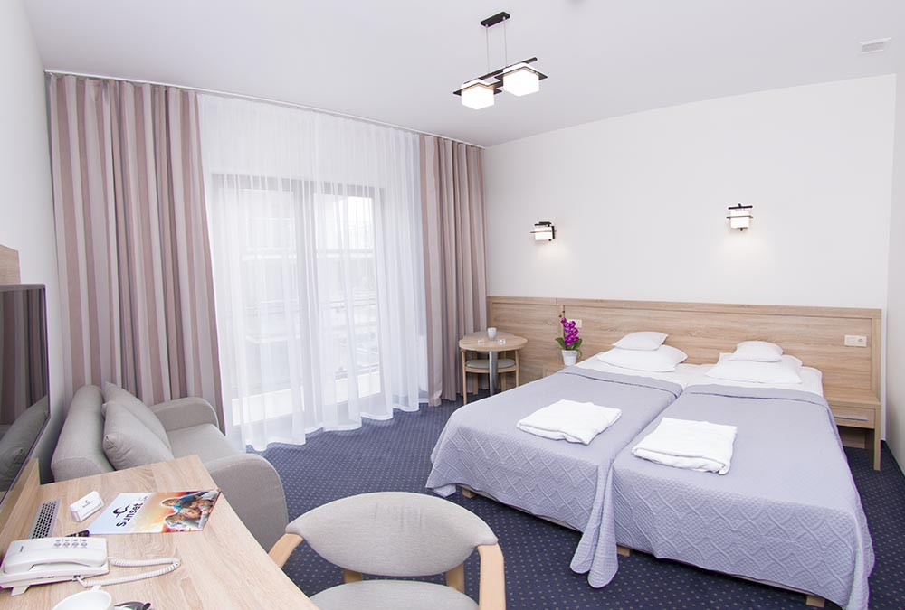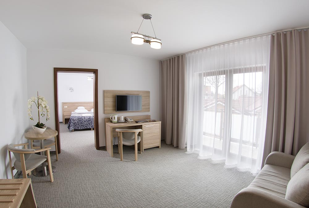 Pokoje typu Studio składają się z pokoju dziennego z rozkładaną sofą oraz oddzielnej sypialni.