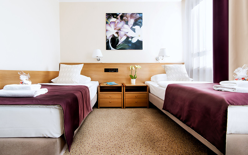 Pokój z dwoma oddzielnymi łóżkami przeznaczony zarówno do wypoczynku jak i sprzyjającej pracy. W wyposażeniu pokoju: łazienka z prysznicem, telewizja z kanałami polskimi i obcojęzycznymi, telefon, radio, stały dostęp do internetu, biurko do pracy.