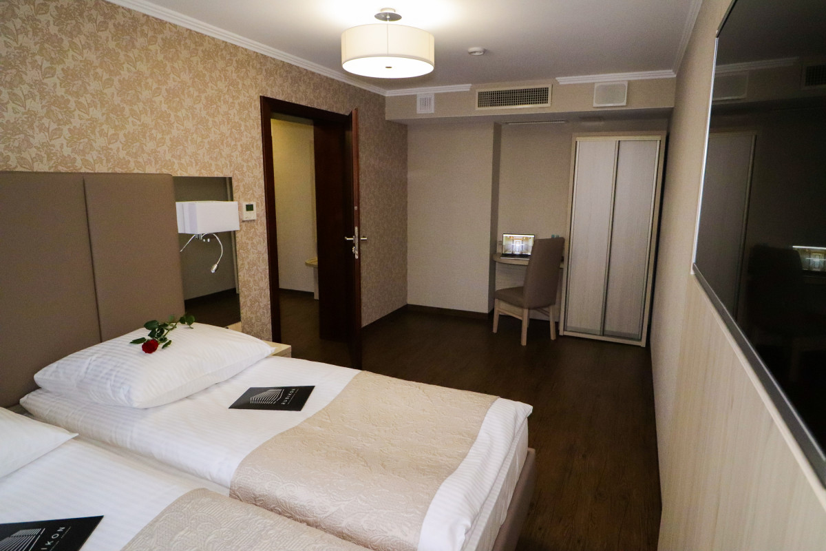Kompleks Restauracyjno-Noclegowy Rubikon oferuje 126 komfortowych pokoi. Zadbano o przestronność, funkcjonalność oraz estetykę pomieszczeń, dopracowując każdy szczegół. Wysokiej jakości wyposażenie, gustowne umeblowanie oraz ciepła, przyjazna kolorystyka sprzyjają pracy i relaksowi. Przytulne wnętrza zapewniają niezapomnianą atmosferę i dobre samopoczucie gości podczas pobytu.