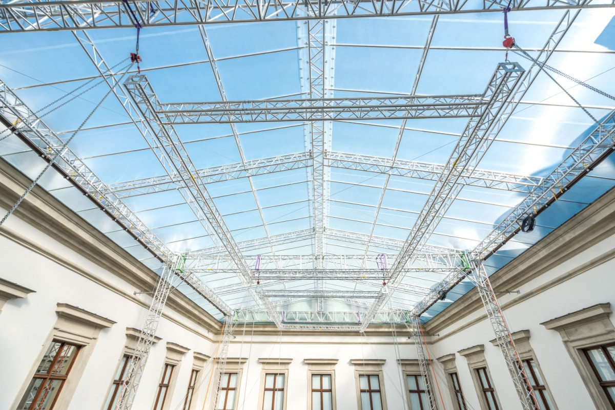 . 'Dla państwa produkujemy: zadaszenia scen, podesty sceniczne, sceny mobilne, podesty obsługowe, konstrukcje pod telebimy, wieże na nagłośnienie, konstrukcje i dekoracje teatralne, konstrukcje wystawowe, aluminiowe elementy dekoracyjne, konstrukcje oświetleniowe, schody i najazdy, zadaszenia użytkowe.