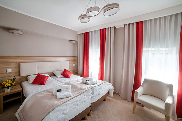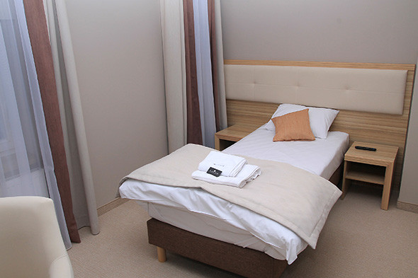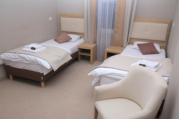Dla osób podróżujących samotnie polecamy pokój dwuosobowy standard. Pokoje wyposażone są w dwa oddzielne łóżka zapewniające wygodny sen. Pokój jest idealny dla grup firmowych oraz przyjaciół.