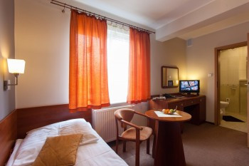 Pensjonat oferuje pokoje 1-osobowe typu STANDARD o powierzchni nie mniejszej niż 12 m2; wyposażone są w: