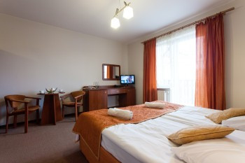 Pensjonat oferuje pokoje 2-osobowe typu STANDARD o powierzchni nie mniejszej niż 20 m2. Większość pokoi posiada balkon. W pokoju znajdują się dwa osobne łóżka o wymiarach 90x200. Łóżka standardowo są zsunięte tworząc duże łoże małżeńskie, jednak na życzenie Gości są rozdzielane. Pokoje wyposażone są w: