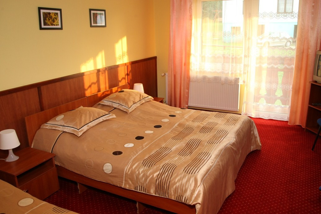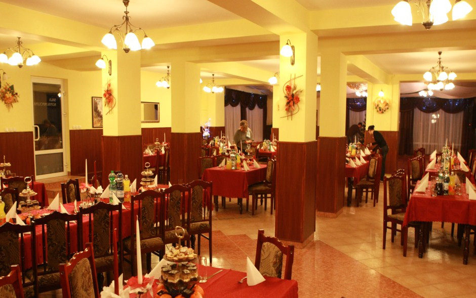 . 'Ośrodek dysponuje 110 miejscami w pokojach 2,3 oraz 4 osobowych, wszystkie z pełnym węzłem sanitarnym. Wszystkie pokoje wyposażone są w TV-SAT. Część pokoi posiada również balkoniki. Ośrodek dysponuje w pełni wyposażoną salą konferencyjną z obsługą multimedialną (projektor, laptop, amplituner z nagłośnieniem 5.1, mikrofon bezprzewodowy i ekran) oraz klimatyzowaną salą weselną. Najważniejszym atutem naszego ośrodka jest smaczna domowa kuchnia wraz z profesjonalną obsługą, która gwarantuje zadowolenie przebywających u nas Gości.