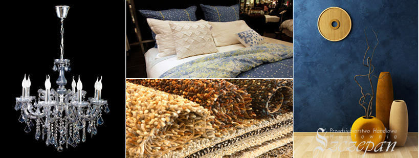 obrusy, serwety, świece, dywany, szuszki, świeczniki, figurki, doniczki, wazony, zegary, metaloplastykę, regały, lampy, ramki, olejki zapachowe, kielichy szklane, osłonki na doniczki, serwetki papierowe, poszewki na poduszki, pościel, koce, narzuty, kufry, kuferki na biżuterię, talerze, salaterki, patery, naczynia zaroodporne, filizanki, szklanki, kieliszki, noze, sloiki, pojemniki, wiadra, wklady do szuflad, podkładki, drobne AGD,wieszaki, chemia, mopy, ścierki, wycieraczki,torebki na prezenty, papier pakowy, wstazki, rafia, materiały do pakowania kwiatów, skarbonki, wiatraczki, zabawki do piasku, pudelka na zabawki, maty na podłogę, słomki, konewki, nawozy, narzędzia, rękawice robocze, wiadra, grille, art.grillowe, tacki aluminowe, latarnie, pochodnie, siedziska na krzesło, meble ogrodowe, figury i fontanny ogrodowe, fotele wiszące