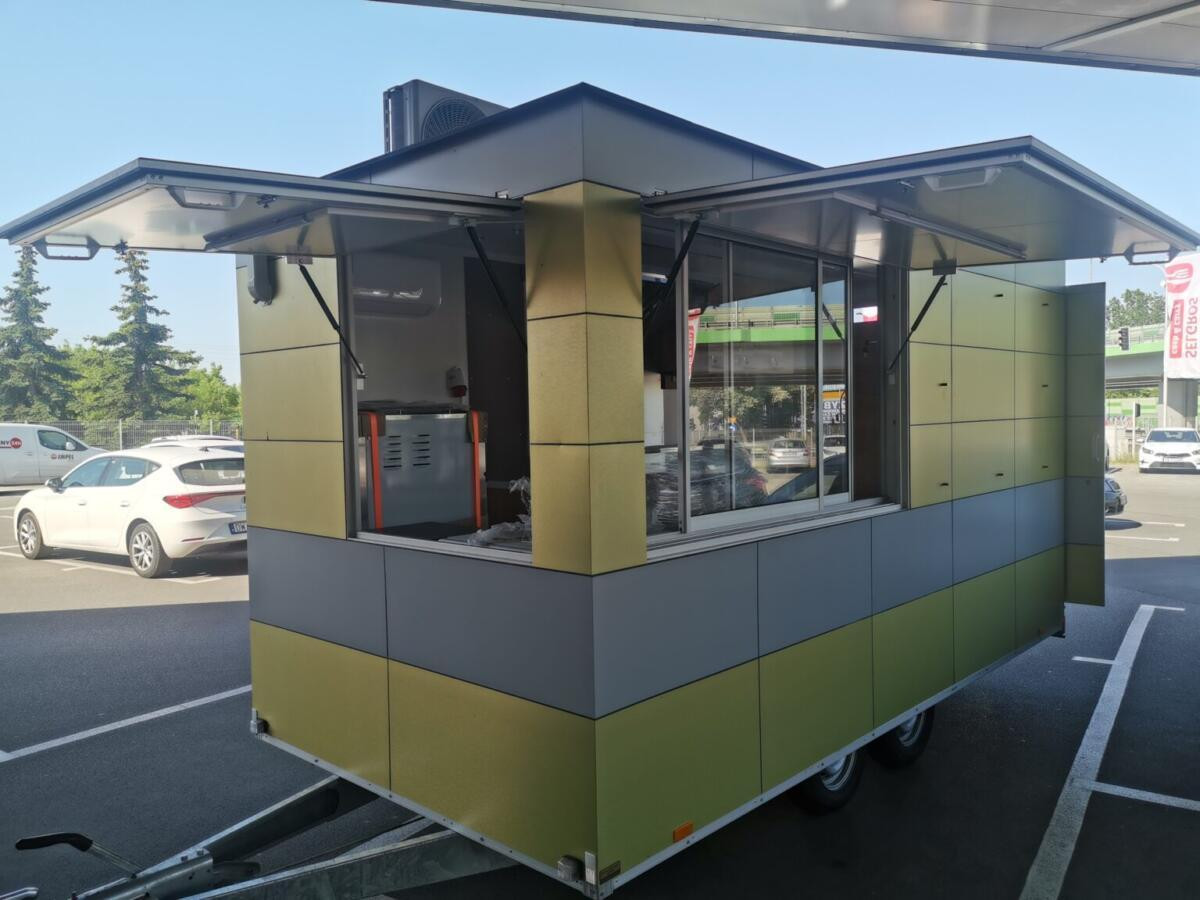 | Przyczepy premium | Rozbudowane modele o większych gabarytach i szerszym wyposażeniu, przygotowane do intensywniejszej pracy. W tej grupie znajdują się przyczepy z dwoma niezależnymi oknami sprzedażowymi, rozbudowaną zabudową meblową, instalacjami, oświetleniem LED oraz rozwiązaniami wspierającymi wysoką funkcjonalność punktu gastronomicznego. |